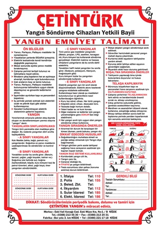 Sevinerek söylemek gerekir ki; Yangın sektöründeki geçirdiğimiz uzun yıllar ve bunlarla birlikte edindiğimiz tecrübe meyvisini vermiş gözükmekte, Google Görseller de arama motorunda “Yangın Talimatı” ismi ile arattığınız vakit, önünüze gelen tüm yangın talimatı görselleri ya bizim firmamız tarafından üretilmiş yada bizim tasarımlarımızın üzerinde kısmi değişiklikler ve firma bilgileri değiştirilerek üretilmiş olduğunu görürsünüz.